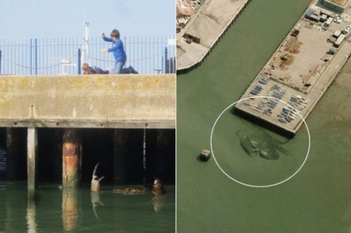 这张照片出现在当地Weird Whitstable网站 上,附带声明中称:“这张惊人照片是7月份在惠特斯特布尔一个颇受欢迎的捕蟹区拍摄的。两个男孩显然为意识到危险,但几个过路人向他们高声喊叫。巨蟹随即悄然滑入水中离开。”
