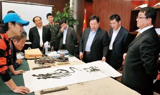 图中为赵本山、小沈阳、王立军、雷政富等人在重庆一同研讨书法艺术时的场景(网络图片 )