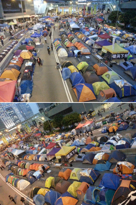 @老林没有V:1区:《文汇报》说的“因为怕被捕所以都撤了”…..图里都能看到帐篷,人好像少,其实都在图片 顶端演讲台那里,因为有事在发生。2268帐篷。人难数。没事人比较少,许多白天上班上学晚上回去睡,但如告急又会从各处赶来(是的,是“赶来”,打的那种),挨棍、坚守,总之就是你怎么乱棍打就是不退后那种(禁歌 里的“任暴雨下,志向未倒下”大概来自这点)。