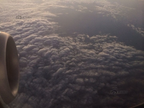 2014年 10月,有乘客在飞机上拍到北京霾层顶部,黑云翻滚骇人。(网络图片 )