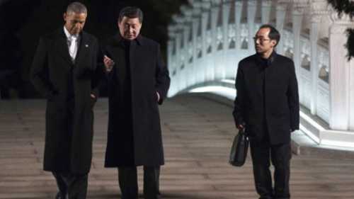 夜宴,茶叙,习近平还与奥巴马在中南海散步,沿途只有两名翻译跟随。这一幕,似乎显示,习近平大权在握,无所忌讳,其权力,至少,远远超过胡锦涛。2002年,时任副主席的胡锦涛访美,曾被美国副总统切尼领进书房,有单独交流 的机会,但随同出访的外交部长李肇星却硬闯进去,大刺刺坐到他们中间,场面尴尬。李受江泽民安排,全程监视胡,胡也无可奈何。2004年,胡已出任国家主席,切尼受布什总统委托,要向胡传达一项“敏感信息”,但他们之间的“密谈”,尽都传到隔壁房间的音箱,被围绕在那里的其他中共官员尽收耳底。这些官员,同样受江泽民指使,负责监视胡。