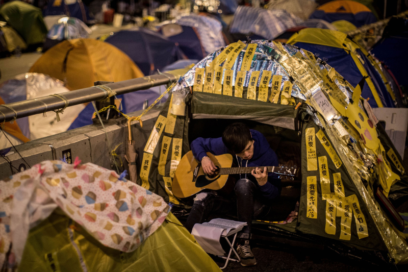 11月20日晚的金钟占领区。(Chris McGrath/Getty Images)