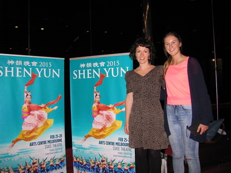 2月26日晚7时30分,神韵纽约艺术团在墨尔本艺术中心上演此次巡回演出墨尔本之行的第二场晚会。精湛的艺术,丰富的历史文化内涵,令现场的观众赞叹不已。来自墨尔本一家私立学校的表演艺术教师Melanie McLean与她的学生Eloise McDonald观看神韵演出后表示,她们非常喜欢神韵的舞蹈、音乐、历史故事。
