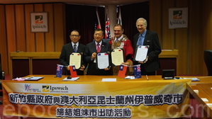 台湾新竹县与澳洲昆士兰伊普斯威奇市(Ipswich)再度签定缔结姐妹市合约。(琳达/大纪元)