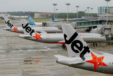 澳洲捷星航空公司(Jetstar)的三架飞机从巴厘起飞,被困在巴厘的首批澳洲旅客在周一晚返澳。(ROSLAN RAHMAN/AFP/Getty Images)