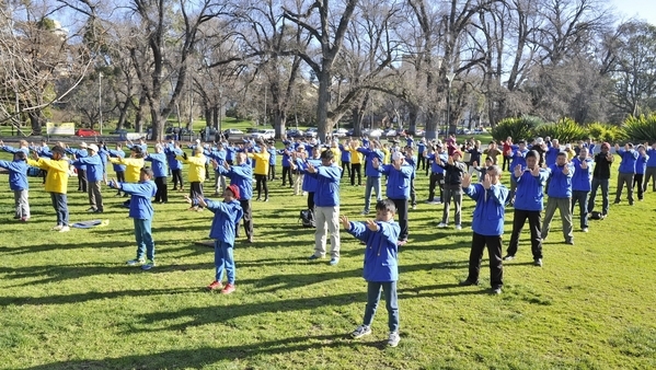 2015年8月2日清晨,阳光明媚,近二百名法轮功学员齐聚墨尔本旅游胜地Fitzroy Garden举行集体大炼功,以祥和舒缓的动作,展示法轮功的五套炼功功法,声援超过十二万名海内外法轮功学员及家属向中共最高检察机构控告江泽民大潮。