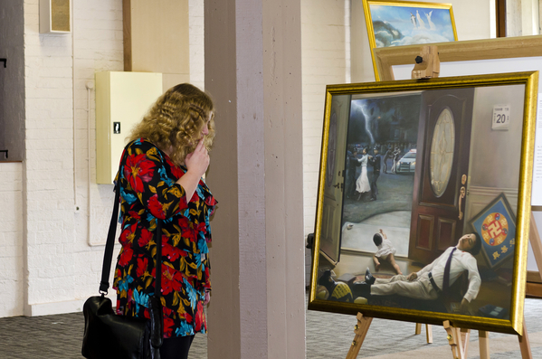 蒂安(Tian Jones)是在西澳大学学习英国文学和历史的学生,她在画展流连忘返,每幅画都很仔细地观看,不少画还来回看了好几遍。“这些画很强大,让我很感动。”蒂安说,“我是在上课的路上经过这里的……我呆的时间太久,已经错过了上课的时间。”