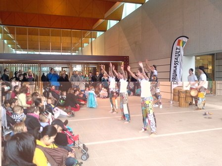 肖像馆门口响起的疾风骤雨般的鼓点最先打动人们的心,这是堪培拉的打击乐队Drumassault在表演西非的传统鼓乐。三位鼓手Dan Graetz、Miles Burns和Matt Boyd用非洲金贝鼓(djembe)和低音鼓家族墩墩鼓(dundun drum)合奏出热情奔放的美妙鼓乐,另有三位妙龄女子短袖赤足,踩着鼓点跳起舞来。音乐舞蹈都有一种原始的韵律和美感。