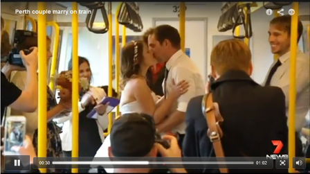 上周日(23日),珀斯一对恋人在驶往市区方向的弗里曼特尔线列车上举行了结婚仪式,火车上的乘客意外地分享了他们的喜悦。