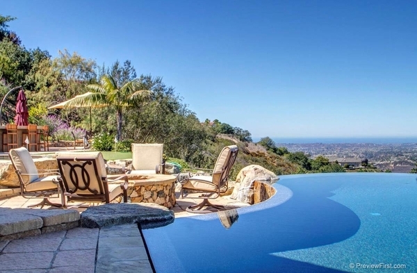 全套豪宅有多个庭院,其间有室外厨房,人工草坪,烧炭盆,温泉池,由于坐落在山顶,无边际游泳池的时尚感势不可挡,与海天相连!繁茂的橄榄树和橡树点缀着庭院,还有缤纷的玫瑰园。