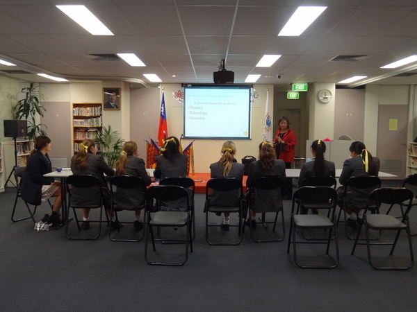澳洲雪梨Kambala Private School私立女子学校陈诗音(Samantha)老师于9月10日带领7位九年级学生参访雪梨华侨文教服务中心。此次参访活动由中心文化老师陈闻礼负责统筹,协同导览志工林瑞敏、陈清诗,以及唐妈妈带领威乐比多元文化活动中心舞蹈社团员共同导览,除解说简介台湾人文地理,更让学生们亲自以书法书写中文姓名,教导学生包饺子、一同学习“高山青”舞蹈等活动。中心主任黄国楠除介绍侨教中心的环境,更提供中心电音三太子予学生合影,会后并赠送该校老师英汉辞典及每位学生“2015年吉羊如意”红包。来访学生对此次导览活动反应相当热烈,收获满载。