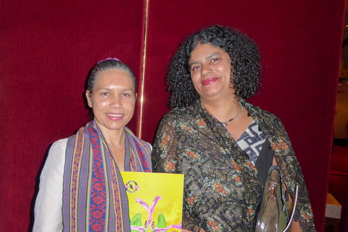 来自斯里兰卡的Damanti Lee女士(前左)和妹妹Shanta Chrysoston(后右)在墨尔本观看了神韵演出。(纪芸/大纪元)