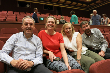 Ian Stewart(左一)携做高中教师的夫人Amanda(左二)以及父母一同观赏了神韵演出,他们对演出的高水准连声称赞。(周鑫/大纪元)