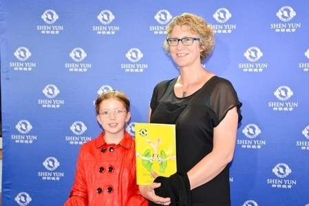 2016年2月16日,幼儿教师Angela Coutts和女儿Sophie观看了神韵世界艺术团在惠灵顿的首场演出。(李颖/大纪元)