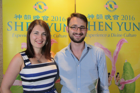 2月27日晚,政府公务员Jenny Roberts和医学院学生Ben Aitrn结伴来观看了神韵演出。(萧玉英/大纪元)