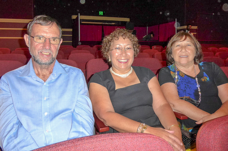 Bill Andreson地质学家(左)、Janet Andreson(中,Bill的太太)、Margaret Thompson(右, Janet的姐姐), 观看了神韵世界艺术团在珀斯的第五场演出。(史迪/大纪元)
