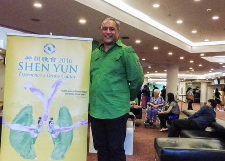 2月13日下午,美国神韵世界艺术团在新西兰奥克兰的ASB剧院的演出,在观众们热烈的掌声中,再次降下了帷幕。演出结束后,一些粉丝仍然流连在剧院大厅,热切地要跟人分享他们观赏完神韵演出后的美妙感受,毛利酋长Amato Akarana的长子Xavier就是其中的一个。