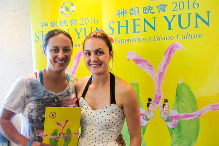 2016年2月27日下午,法律顾问Karina Lomhoot(左)和女儿Samantha共同欣赏了神韵的精彩演出。(萧玉英/大纪元)