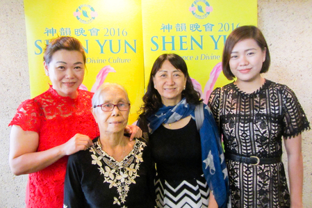 来自马来西亚的新锐艺术家林紫薇(右一)携家人一同观看2016年2月27日下午在昆士兰艺术中心的神韵演出。(萧玉英/大纪元)