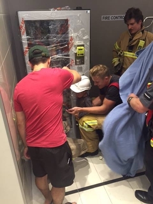 救援人员用了数小时将贩售机拆成一块一块,才将陷入困境中的男孩解救出来。