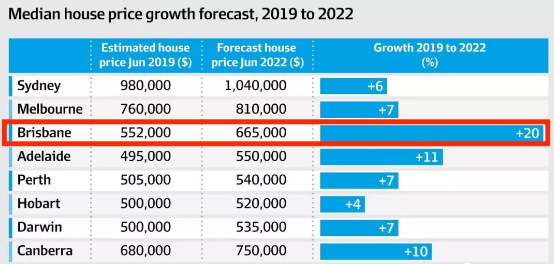 世界领先的经济预测机构BIS牛津经济研究院(BIS Oxford Economics)的最新数据显示:在未来三年内,随着经济的增长加上布里斯班房价的可负担性,预测地区房价最多将飙升20%,别墅中值从$55.2万澳币上升至$66.5万澳币,远远超过全国其他城市。悉尼和墨尔本的复苏将更为温和,预计同期房价中值将分别上涨6%和7%。