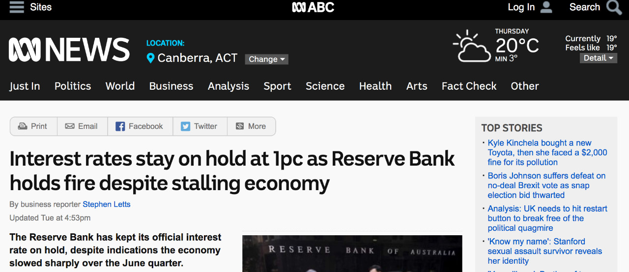 澳联储维持超低1%利率不变