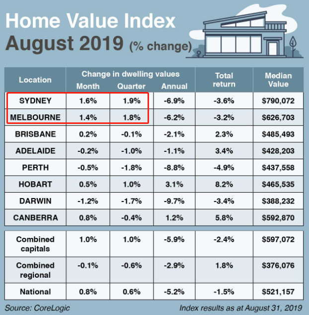 在经历了2年的可怕萎缩之后,8月,澳洲的房价像是过山车俯冲后的回环,